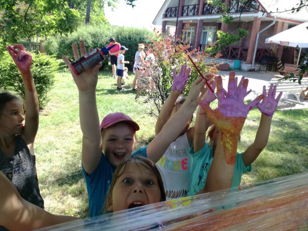 Dzisiaj zakończyliśmy I tydzień naszych półkolonii. Na pożegnanie niektórych kolegów i koleżanek zorganizowaliśmy kilka niespodzianek – była dmuchana zjeżdżalnia, ognisko…
