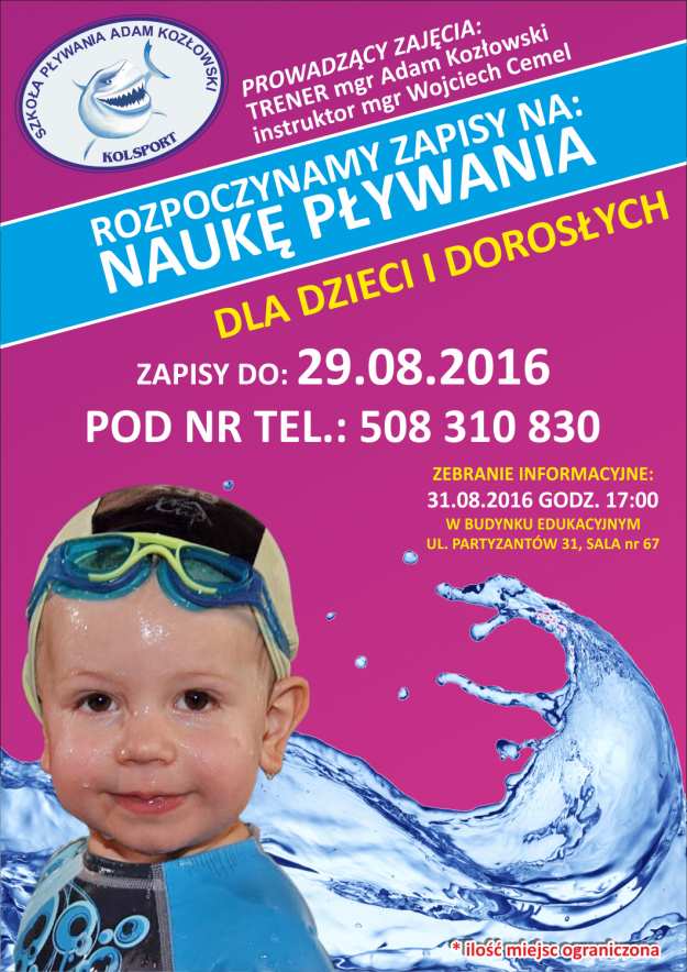 Zapraszamy wszystkich chętnych do nauki pływania – liczba miejsc ograniczona! Bardzo proszę osoby uczęszczające w roku porzednim o potwierdzanie chęci…