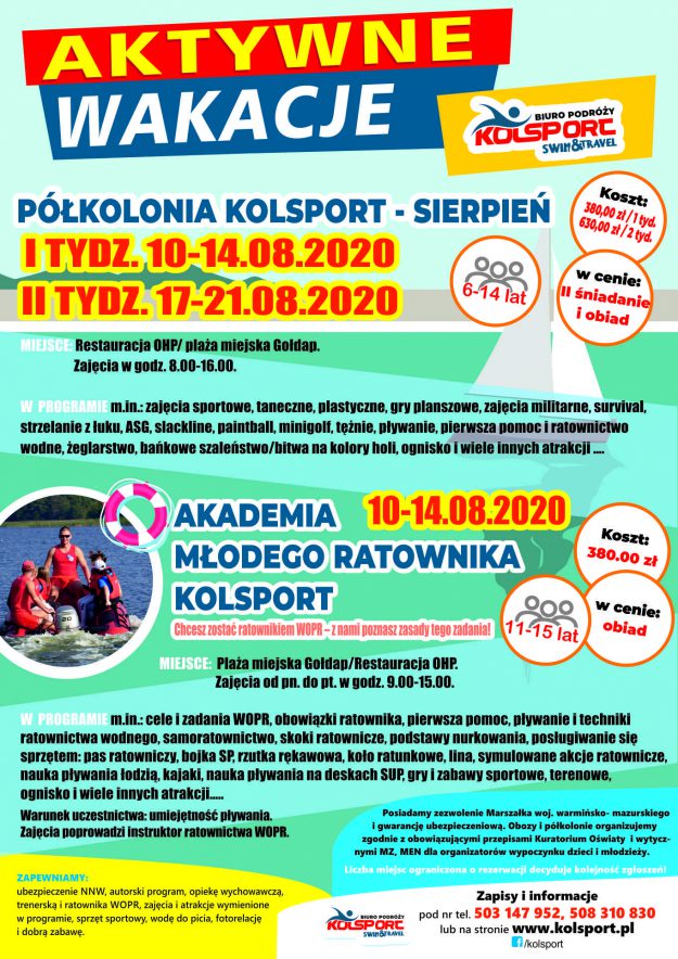 Półkolonie KOLSPORT – sierpień 2020 – formularz zgłoszeniowy – dokumenty do pobrania.
